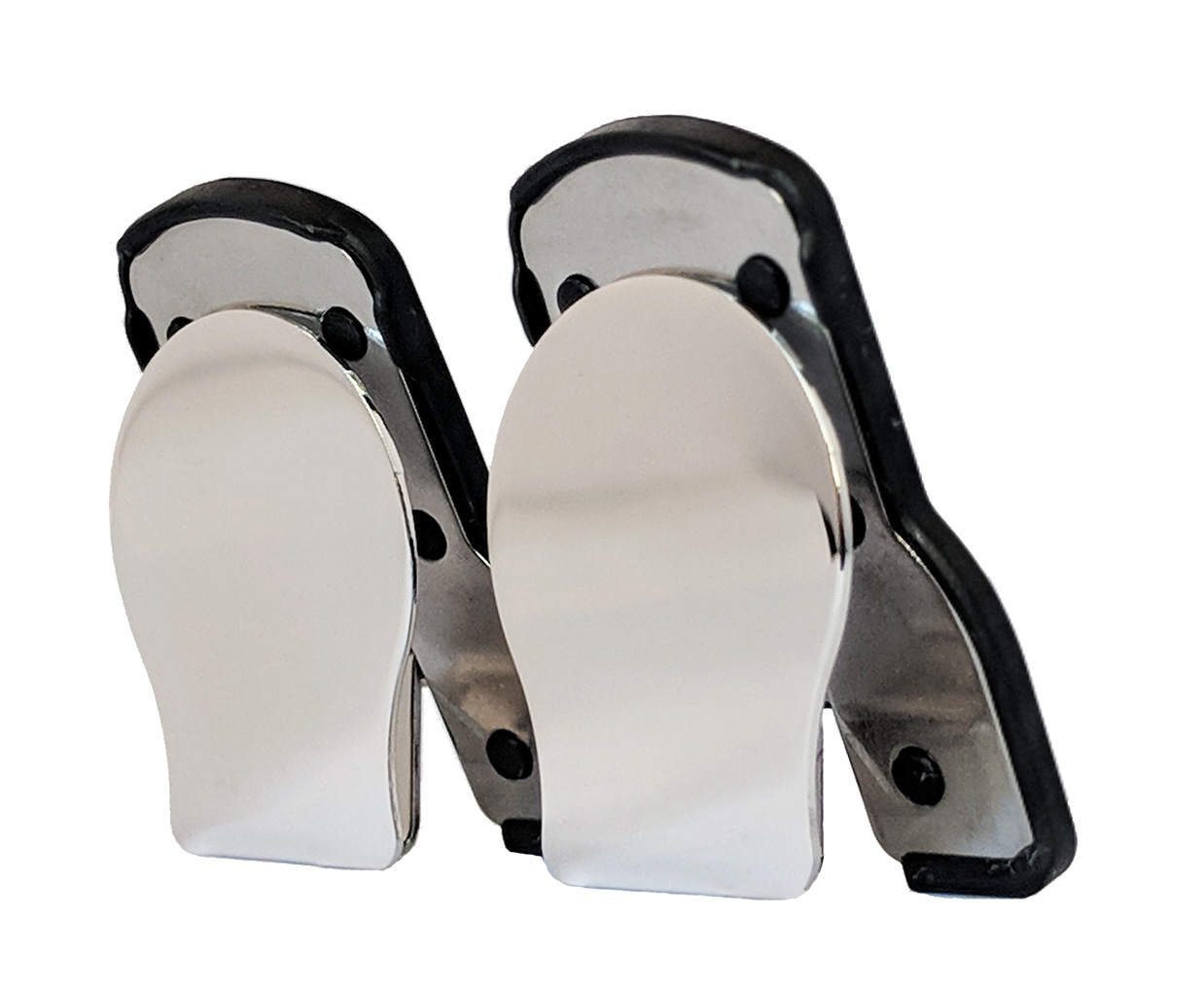 SLEEVE CLIPS USE BRAND NEW CLIP TECHNOLOGY. THE JAWS ARE SPRING-POWERED TO EXERT MAXIMUM GRIPPING FORCE, WHILE THE CHASSIS IS DESIGNED TO LAY 100% FLAT ON BOTH SIDES OF THE SLEEVE FOR ULTIMATE COMFORT & STYLE.